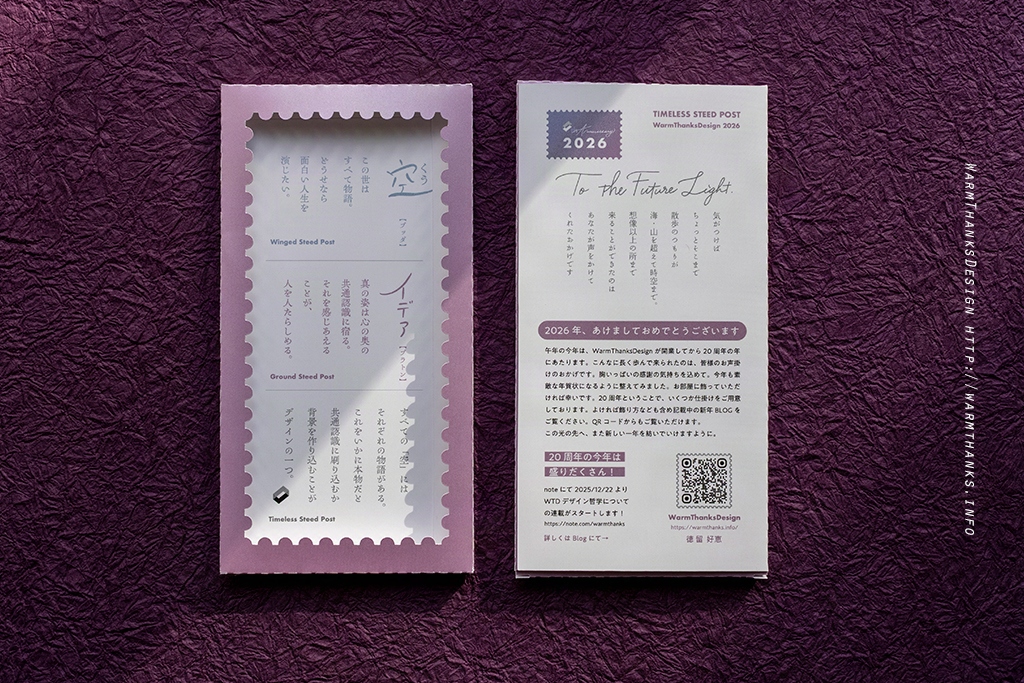 WTDのロゴって箱っぽいロゴにしているんですが、箱の形(=世界観)を整えるという意味を持たせおり、そういう意味では20thに箱の年賀状にしたこと、またはこの中に世界観をイメージする言葉を表現したのはある意味理にかなっていたのかもしれないと思う次第です。