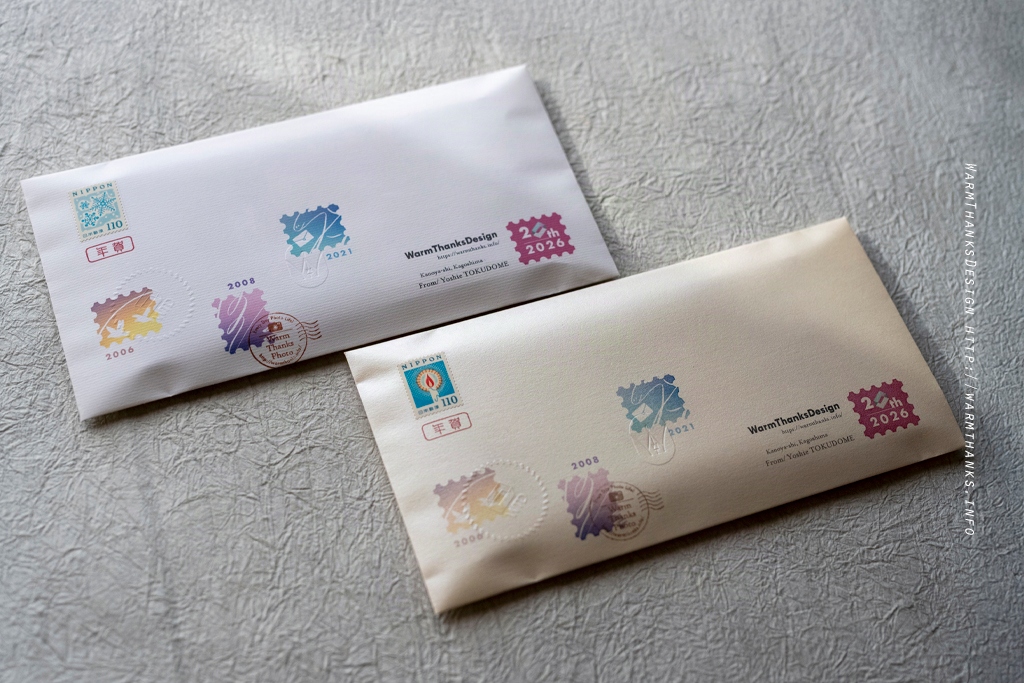 20周年記念バージョンはだいたいお客様先や仕事で関わった方に送りました〜^^ただ、こっちのほうがなんかしっくり来る…と思って途中からお友達もこちらバージョンで混じっているかも(笑)