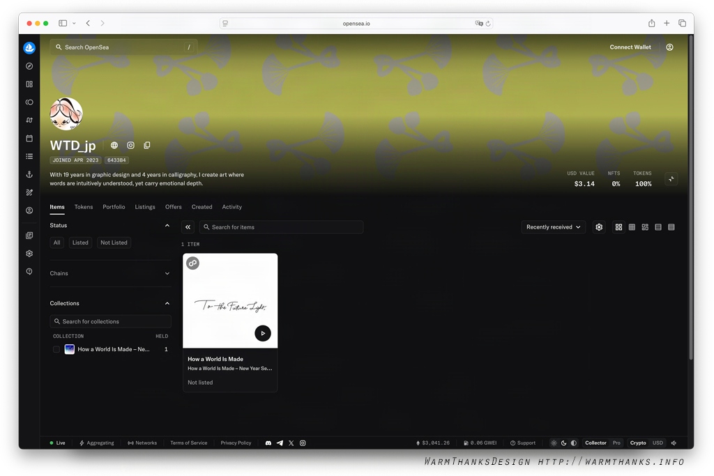 NFTは2023年にMetaMask登録とOpenSeaの登録済んでるのにほったらかしてたんですが…毎年やると思いつついい加減にほんとに出したい!と思い登録から2年かかって着手。最初に出すものは記念立ち位置にしたいなと思い、年賀状と絡めて売らずに、それでいて20thの記念の一つになるものという形で初めて出してみました!